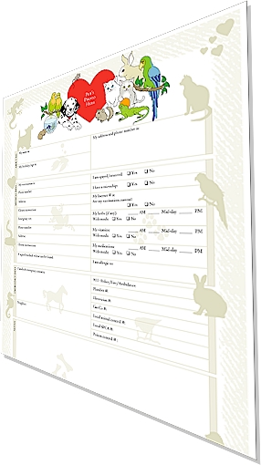 Our pets are so dear to us and are such a special part of our family. When My Family Is Away . . . Pet Care and Safety Instructions for Pet Sitters is a must-have care and safety instruction chart. This chart is for pets and animals of all types. It’s the perfect way to clearly communicate your pet’s needs to pet sitters, family members, kennels, veterinarians, stables and more. Even animal husbandry programs, 4-H clubs and Zoos will find this a very useful resource. This chart is especially important as it enables you to define your instructions for the delicate and special care of ill, elderly, pre-weaned and exotic pets.
